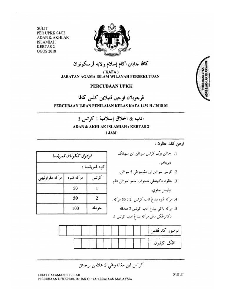 Upkk Percubaan Adab Kertas 2 2019 Pdf